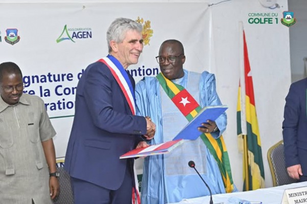 (IMPARTIAL ACTU)- Une délégation de l’agglomération d’Agen, conduite par son président Jean Dionis, a séjourné à Lomé en fin de semaine dernière. Cette visite a abouti à la signature d’un protocole d’accord avec la commune togolaise de Golfe 1, symbolisant une nouvelle étape dans la coopération décentralisée entre la France et le Togo.