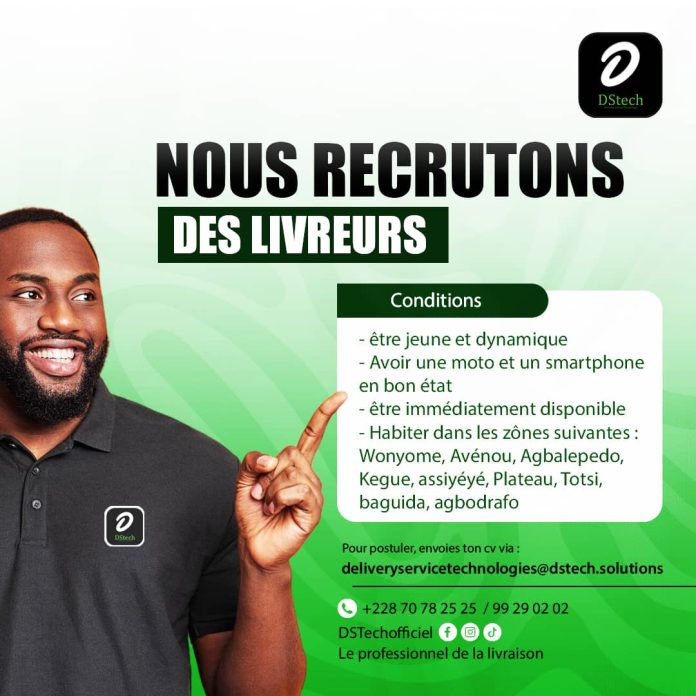 (IMPARTIAL ACTU)- Pour le bon déroulement de ses activités et aussi pour ses besoins d’extension, la société à responsabilité limitée unipersonnelle dénommée Delivery Service Technologies (DSTech) basée à Lomé où elle opère, recherche de toute urgence des agents livreurs expérimentés et dotés d’un sens affirmé de professionnalisme.