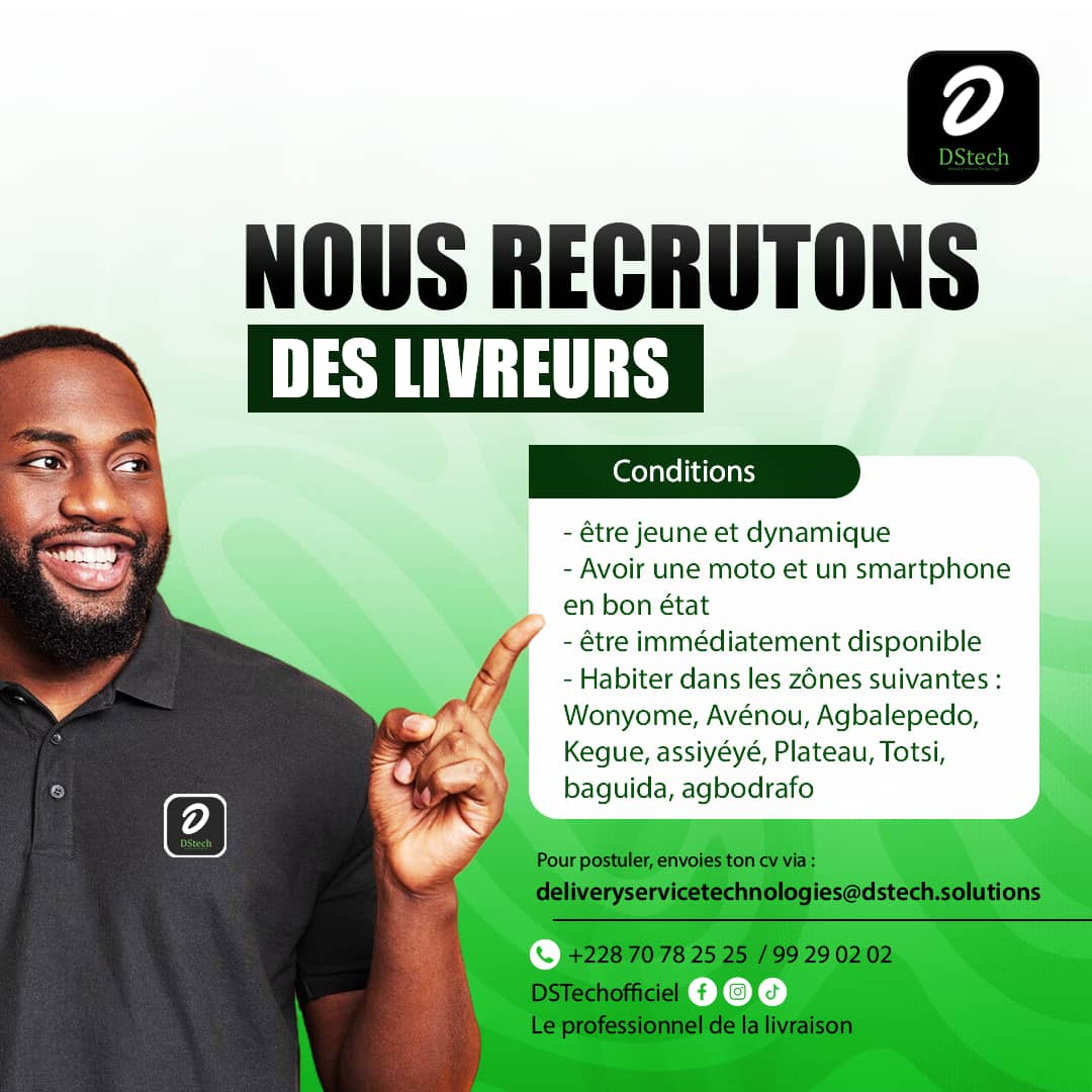 Lomé : DSTech recrute de toute urgence des livreurs
